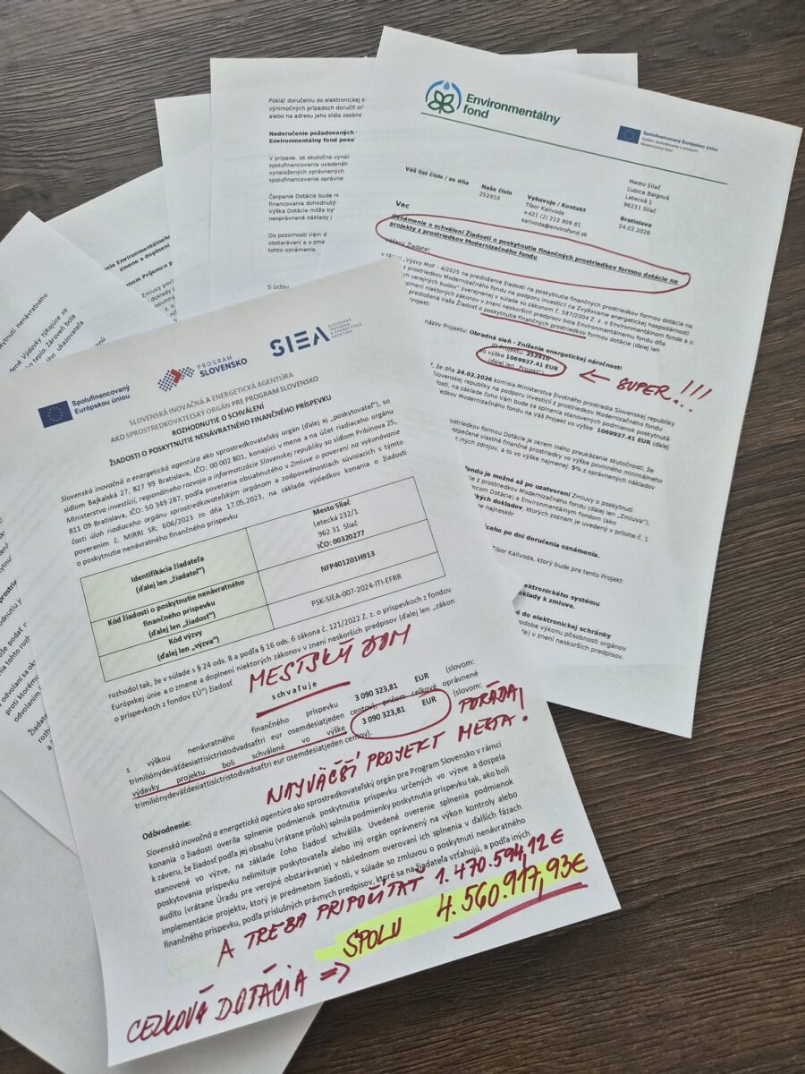 Nedávno sa začal rok 2026. Vstupovali sme do neho s veľkými očakávaniami. Podali sme niekoľko projektov a chceli sme aby sme boli úspešní, veď získané finančné prostriedky pomôžu nášmu mestu s rozvojom. A očakávania sa už vo februári naplnili na 90%. Získali sme viac ako 6 miliónov €. Je to veľký úspech, úspech nás Sliačanov. Rozpočet mesta Sliač je cca 3 mil € a my sme získali dvojnásobok ročného rozpočtu! Získali sme niečo, čo by sme si nikdy nemohli dovoliť z vlastného rozpočtu.